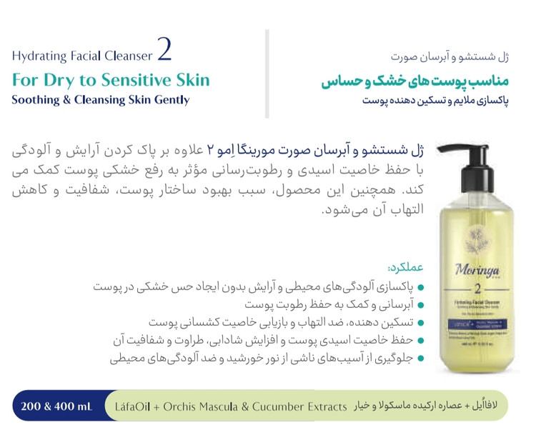 Hydrating cleanser gel for dry to sensitive skin 400 ml 2 moringa