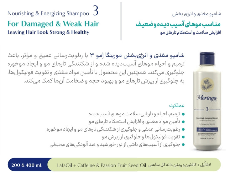 شامپو مناسب موهای آسیب دیده و ضعیف ۳ مورینگا