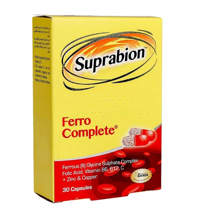 کپسول فرو کامپلیت سوپرابیون حاوی ویتامینها و عناصر ضروری جهت تشکیل هموگلوبین و گلبول قرمز است. با مصرف این مکمل انرژی بدن افزایش یافته و خستگی و بیحالی کمتر احساس خواهد شد.