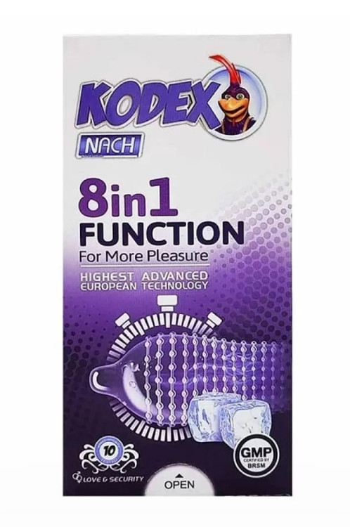 کاندوم ۸ در ۱ فانکشن کدکس Kodex 8 In 1 Function Condoms کاندومی با قابلیت های مختلف در یک محصول است. کاندوم ۸ در ۱ کدکس یک کاندوم تاخیری مناسب با ماده موثره برای تاخیر در انزال است. همچنین کاندوم ۸ در ۱ کدکس فانکشن دارای ترکیبات خنک کننده در راستای تاخیر در انزال است.