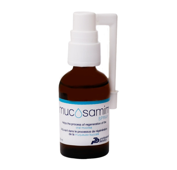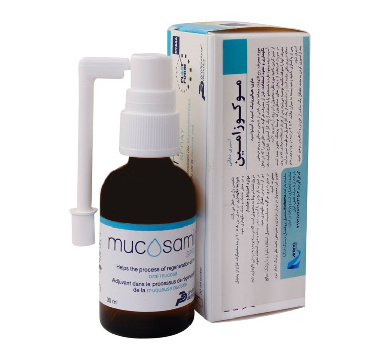 اسپری دهانی موکوزامین پروفشنال حاوی آمینو اسید و هیالورونیک اسید بوده و در رفع التهابات مخاط دهان ناشی از شیمی درمانی و پرتو درمانی بسیار موثر عمل میکند