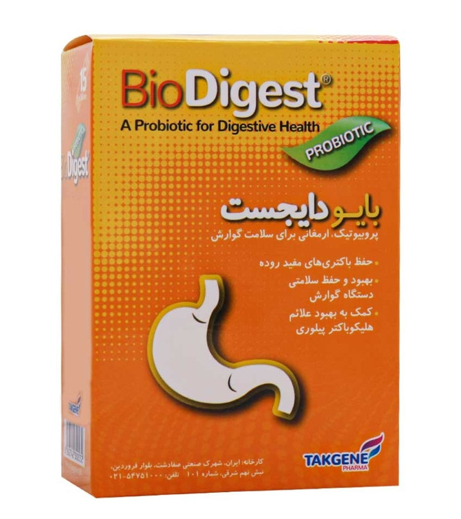 ساشه بایو دایجست تک ژن فارما مکمل پروبیوتیک حاوی ساکارومایسس بولاردی جهت کمک به افزایش سلامت سیستم گوارشی به خصوص معده، بهبود علائم هلیکوباکتر پیلوری، درمان اسهال و پیشگیری و درمان مشکلات گوارشی ناشی از تجویز آنتی بیوتیک به کار میرود. درواقع میتوان گفت بایو دایجست جهت حمایت از نگهداری باکتریهای مفید روده استفاده میشود و خطر ابتلا به بیماریهای گوارشی را به میزان قابل توجهی کاهش میدهد. به صورت کلی مکمل پروبیوتیک برای رفع علائم هلیکوباکتر پیلوری مفید است