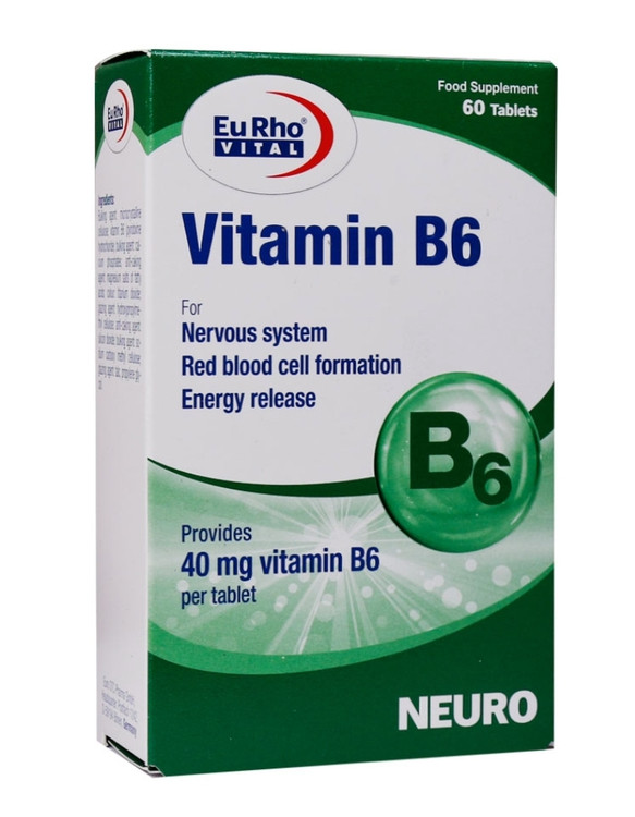 قرص ویتامین B۶ یوروویتال جهت تقویت سیستم عصبی، ساخت گلبولهای قرمز و آزادسازی انرژی مناسب است. در هر قرص حدود ۴۰ میلی گرم ویتامین B۶ وجود دارد که این قرصها به صورت روزانه قابل استفاده هستند.