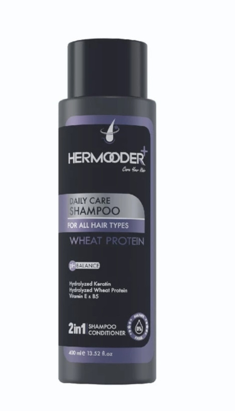شامپو روزانه هرمودر با فرمولاسیون ملایم علاوه بر پاک کردن آلودگی ها به مو آسیب نمیرساند.این محصول با ترکیباتی چون عصاره ها و ویتامین ها غنی شده موجب حفظ سلامت موهای شما میشود و برای موهای چرب تا معمولی مناسب است.