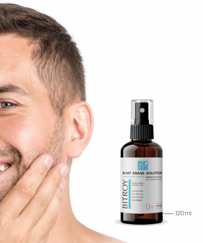 محلول مو زیر پوستی بیتروی BITROY جهت آبرسانی، محافظت و تسکین پوست صورت، بدن و عوارض ناشی از استفاده تیغ و پس از اپیلاسیون فرمول شده و حاوی ترکیبات موثر لایه بردار، تنظیم کننده چربی، ترمیم کننده، ضدالتهاب و قرمزی نظیر سالیسیلیک اسید، روغن درخت چای، نیاسینامید، بتاگلوکان و کالاندولا می باشد. از مزایای دیگر این محصول جلوگیری از ایجاد جوش و موهای زیرپوستی می باشد. پس از اصلاح یک لایه نازک از محلول را روی قسمتهای اصلاح شده اسپری کنید، کمی ماساژ دهید و اجازه دهیدخشک شود. این محلول مناسب پوستهای دارای جوش و التهاب نیز می باشد. برای اثردهی بهتر و جلوگیری از ایجاد موی زیرپوستی می توانید این محلول را چند ساعت قبل از اصلاح یا اپیلاسیون نیز استفاده نمایید. قبل از مصرف محصول را خوب تکان دهید.