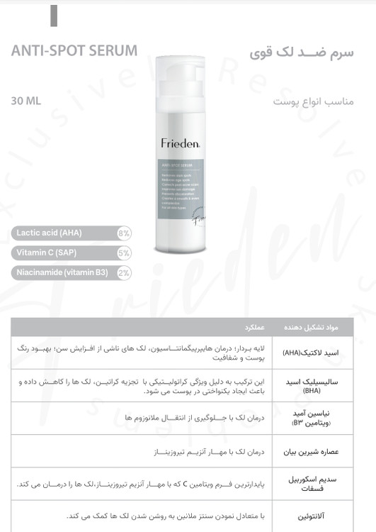 سرم ضد لک قوی مناسب انواع پوست فریدن